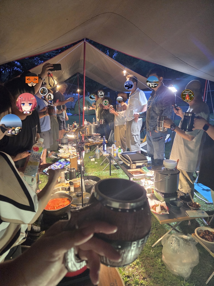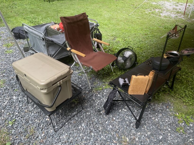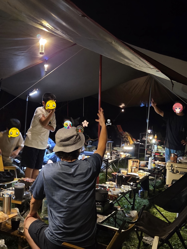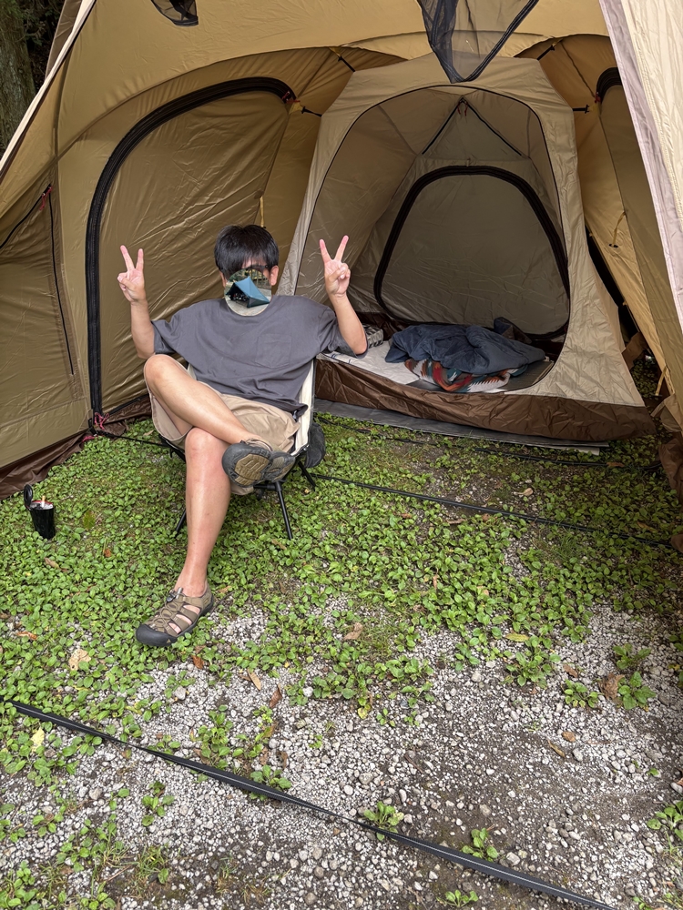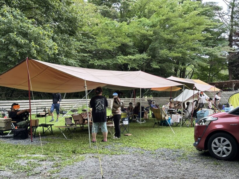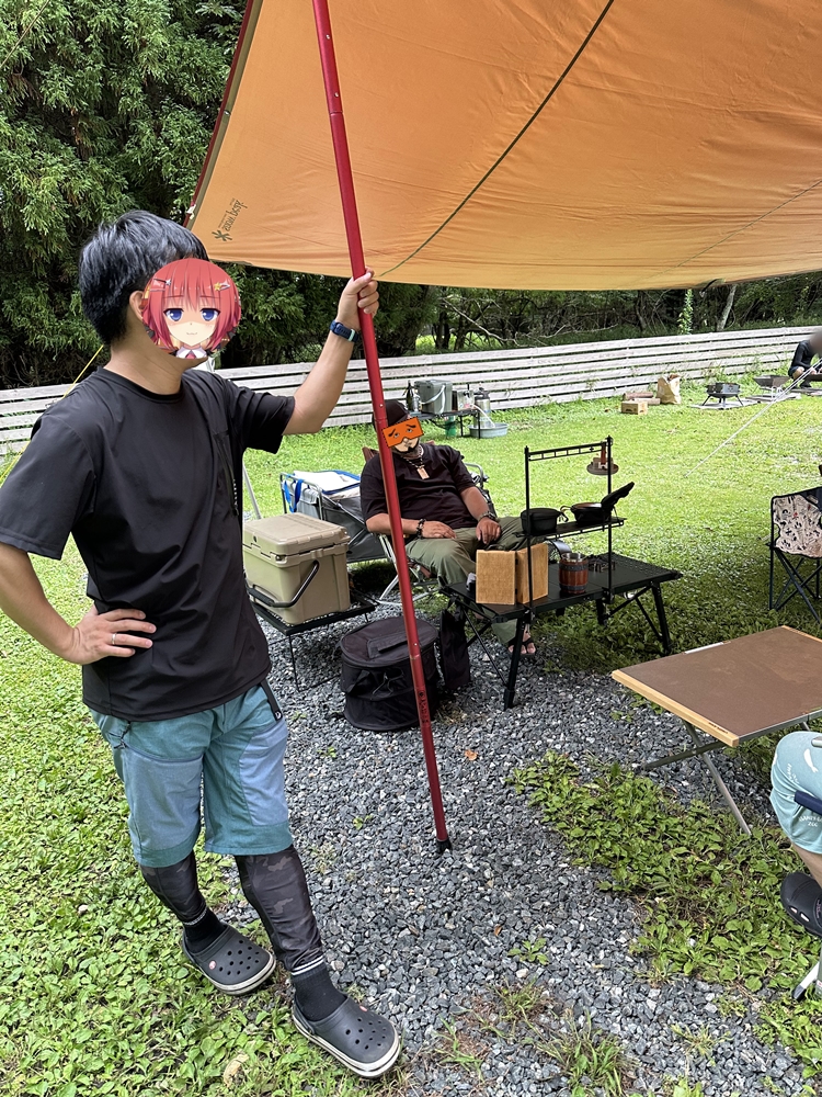 私は想定外に遅い到着で、宴会幕でレクタL持ってきます!と言ってたので、着いてすぐにレクタLを出して、皆さんで力を合わせて設営していたのですが、