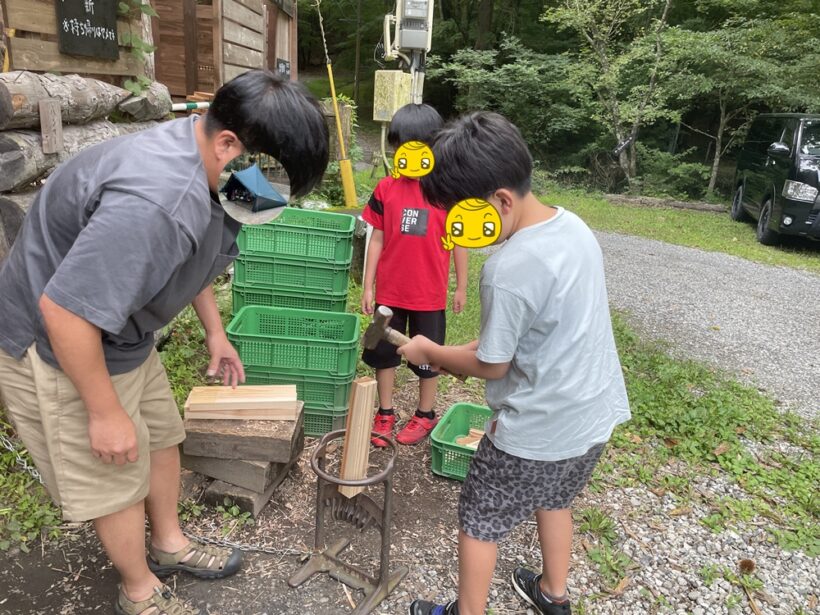 虹パパさん(@nijinopapa0127)は、子供達を薪割りを楽しんでました