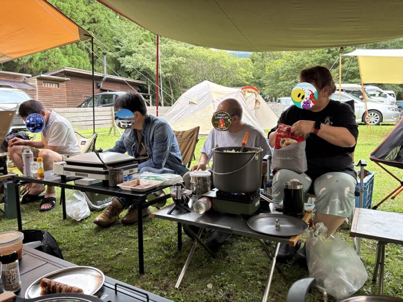 サトルさん(@satoru_richard)率いる、サトル軍団御一行は自分達の幕で調理をされてました。