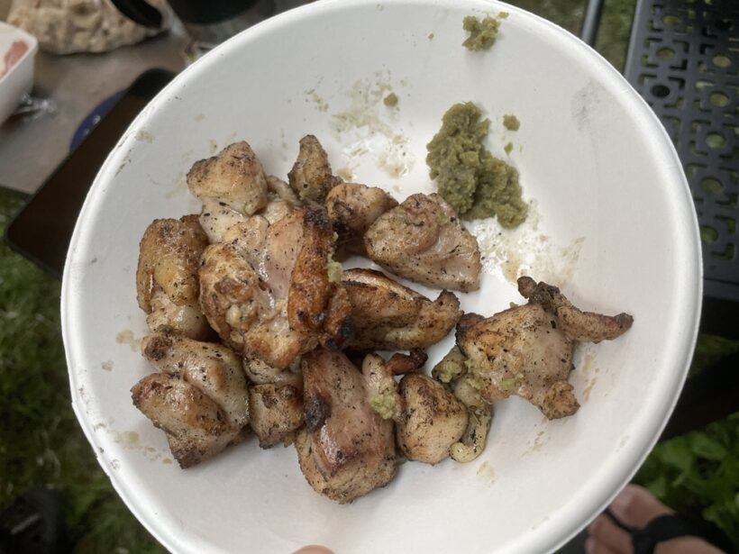 そんな親父をよそ目に、総統の娘ちゃんが地鶏のモモ焼きを作ってくれています。