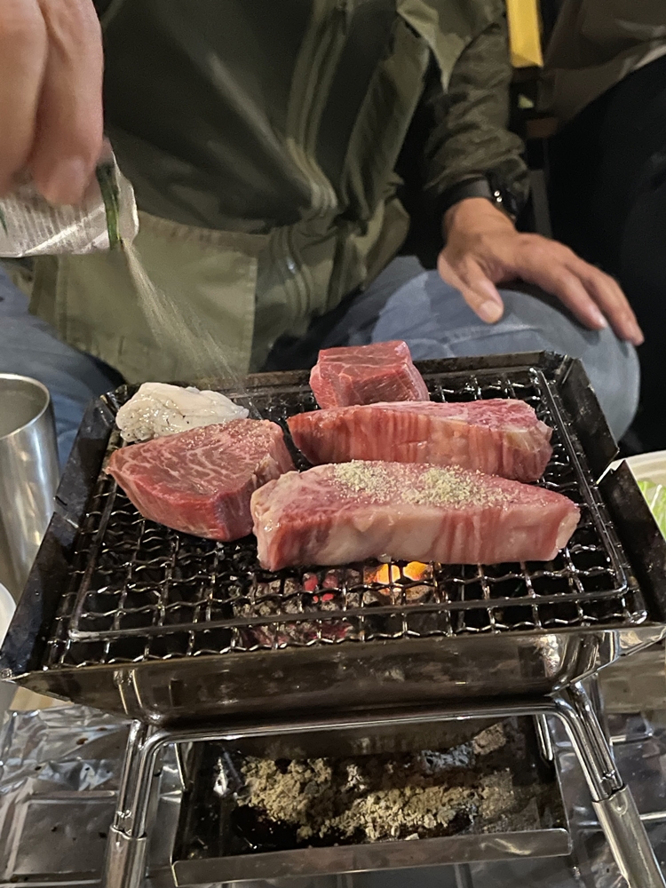 この魅惑のローストビーフが何皿かあり、宴会幕の色んなところから甘美の声に包まれます。