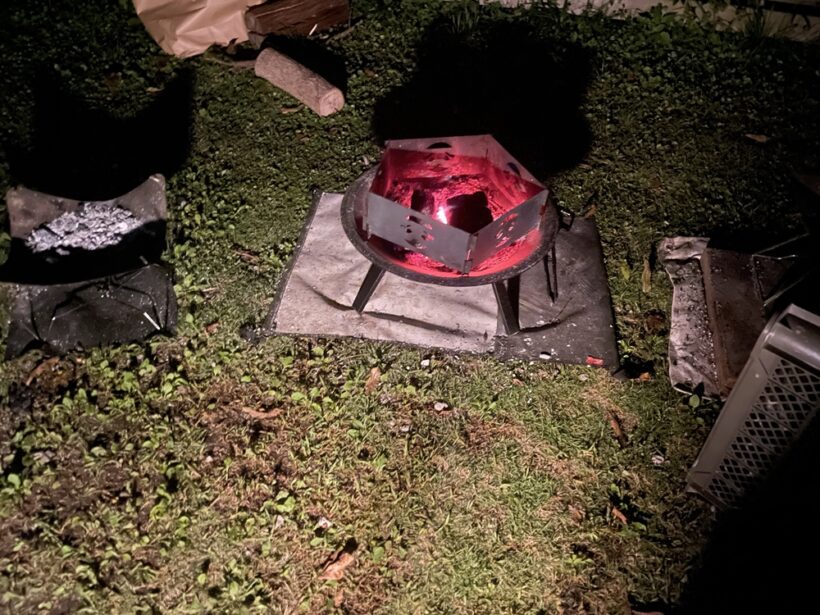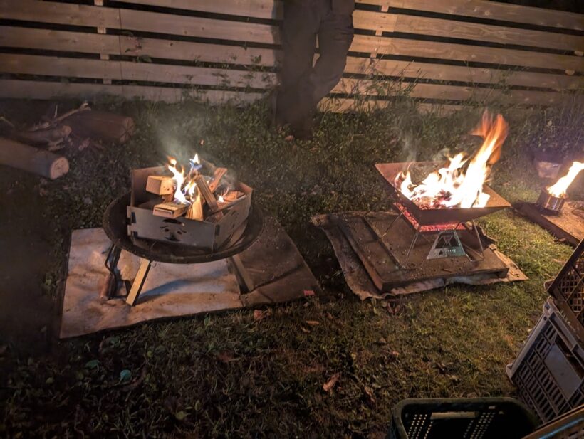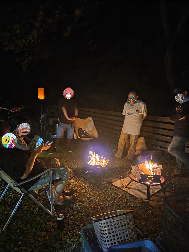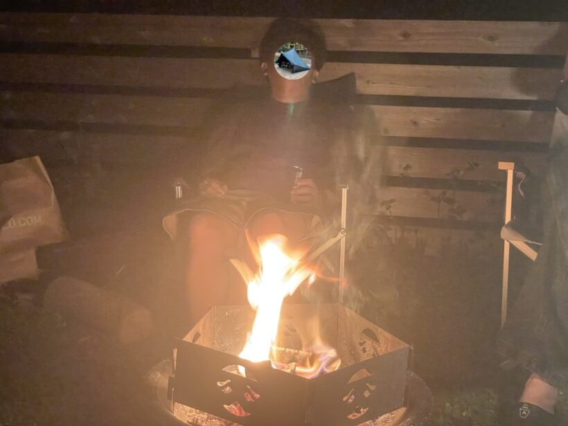 話で盛り上がり過ぎて、ようやく焚き火しようかな、と思ったら自分の焚火台で勝手に焚き火始まっててワロタw