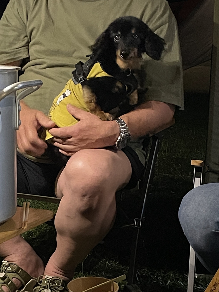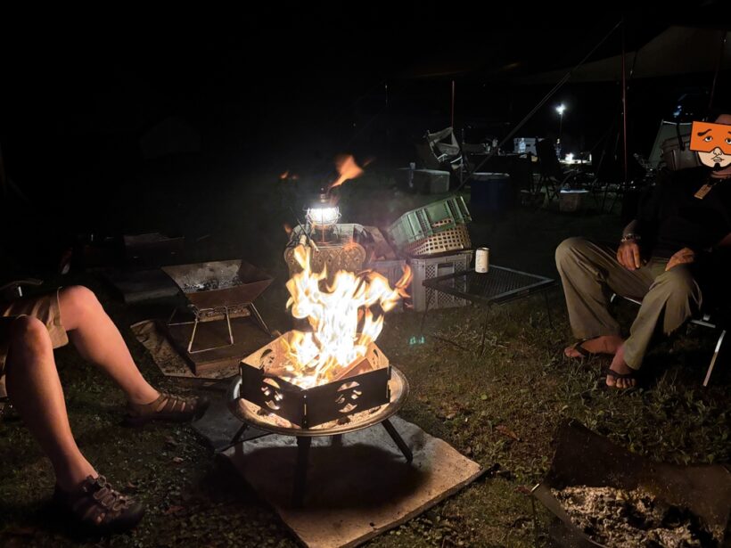 とのことで、じゃあ焚き火を囲んで飲みましょう!とアンサーしたら、満足そうに焚き火の前に移動してくれました。(怖いw)