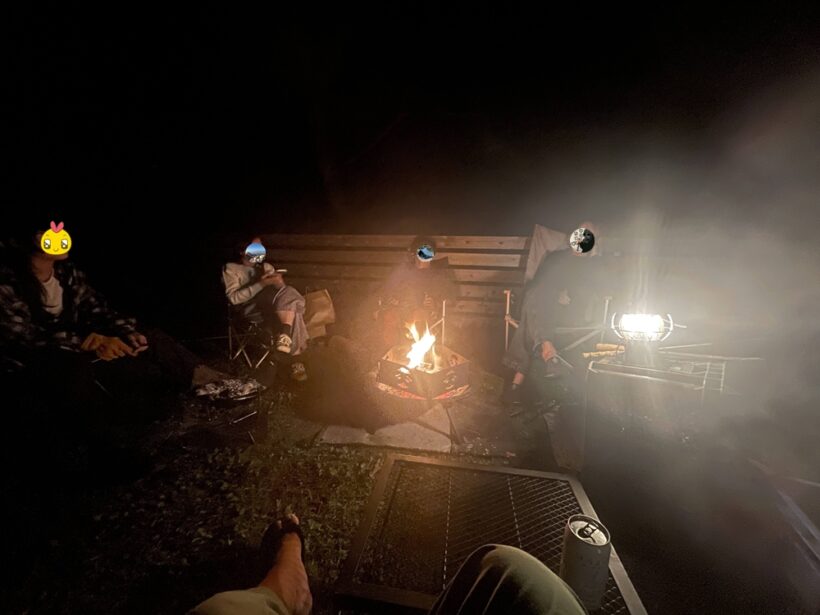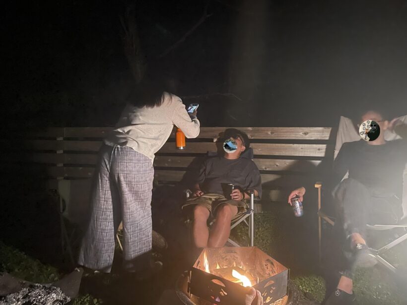 人数が多いと、どうしても全員で喋ることはできないので、焚き火を楽しむ者、